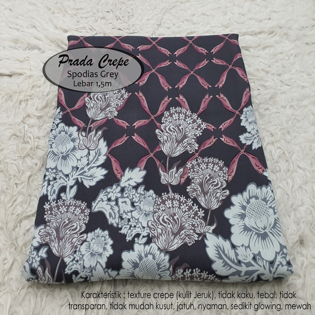 Kain Prada Crepe Motif Spodias Grey Harga Per 0 5m Shopee Indonesia